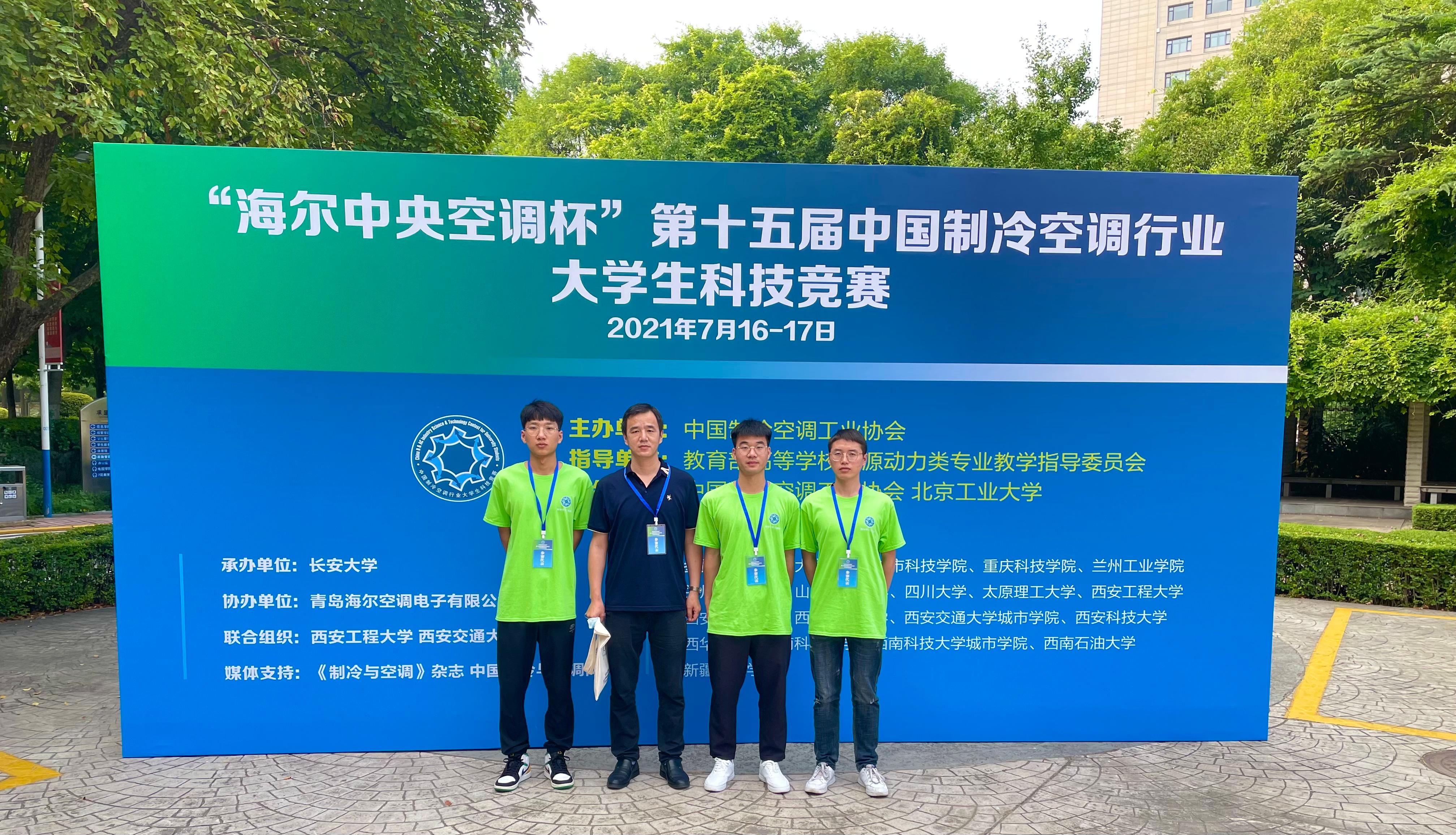 7月17日,由中国制冷空调工业协会主办、教育部高等学校能源动力类专业教学指导委员会指导、长安大学承办的“海尔中央空调杯”第十五届中国制冷空调行业大学生科技竞赛(西部决赛)在长安大学落下帷幕, 由我校建筑环境与能源应用工程专业2018级学生谢永亮、孙永勇、包陇鹏(指导教师:张双德、戚海春)组成的代表队获得本科组二等奖。