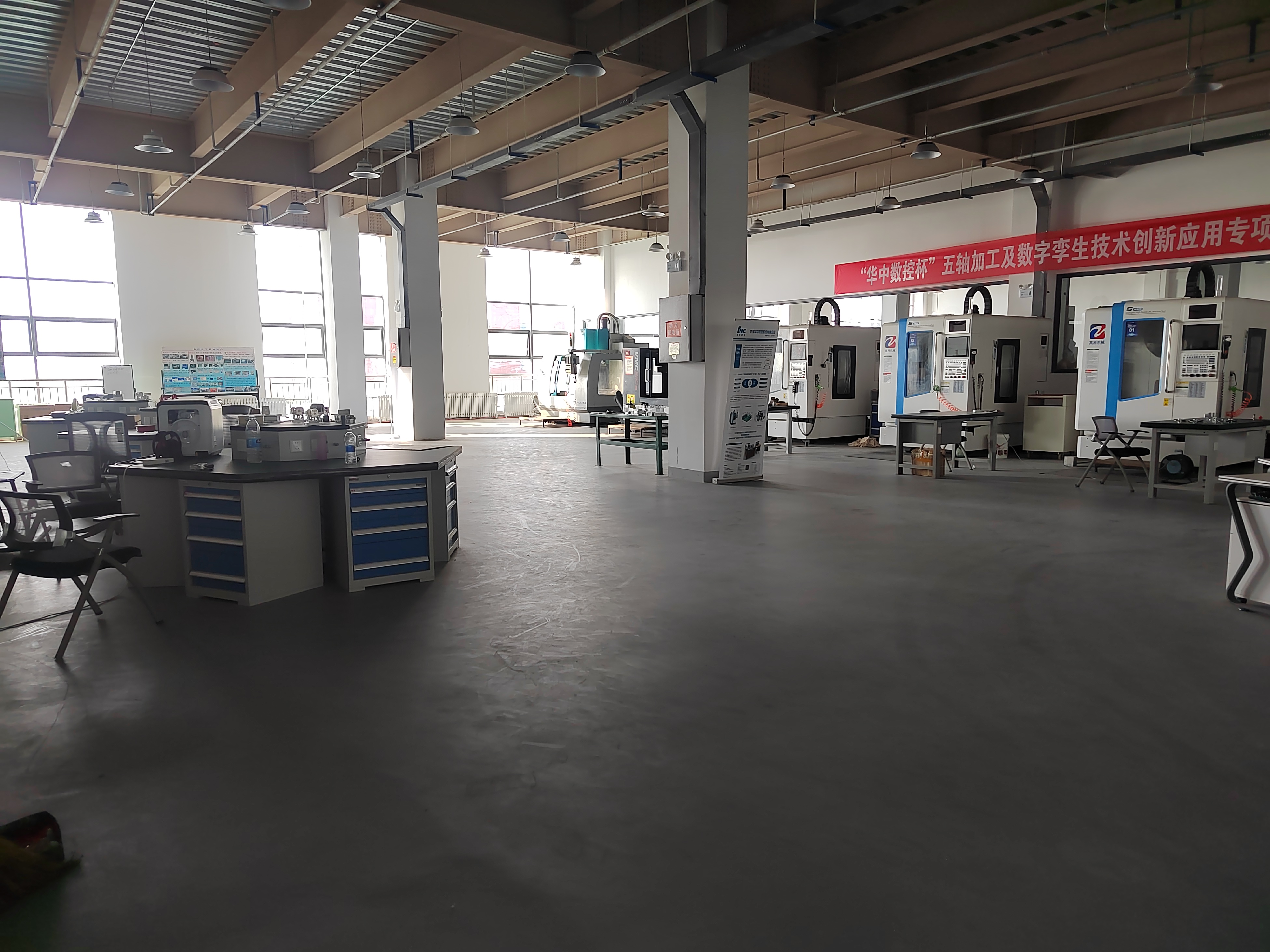 数控加工中心实训基地占地面积360平方米,设备总值高达400余万元。基地配备了先进的数控加工中心机床5台,其中包括五轴联动加工中心3台,能够满足复杂零件的高精度加工需求。